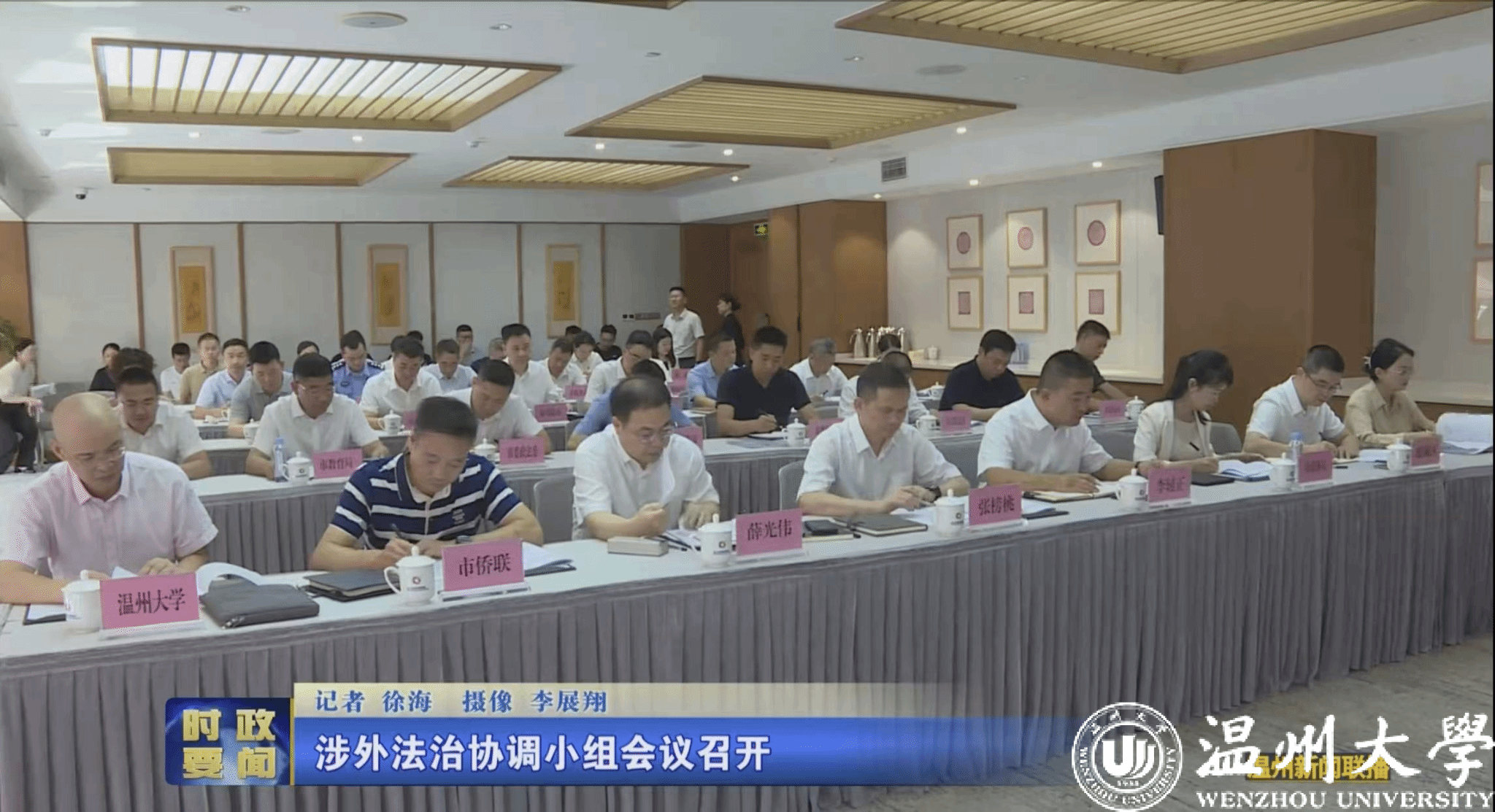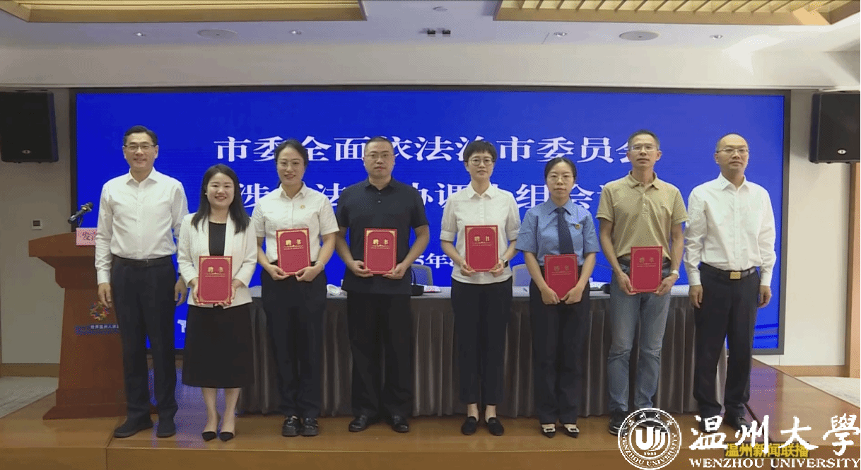 8月25日,温州市涉外法治协调小组会议暨全球温商华侨法务中心揭牌仪式在世界温州人家园举行。市委副书记、市委依法治市办主任、涉外法治协调小组组长王军出席并讲话。我院周一颜、李娟、邱杓丹、白亚宁等7名教师受聘担任市级涉外法治智库成员。王宗正院长代表av天堂 作交流发言。