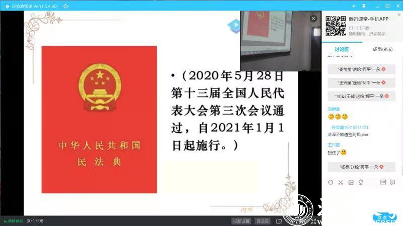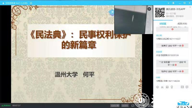 2020年11月11日下午13:30,av天堂 、电子与电气工程av天堂 、国际教育av天堂 联合在线上腾讯课堂开展本学期《形势与政策》专题讲座,特邀何平老师就“《民法典》民事权利保护的新篇章”这一主题与同学们进行了分享。