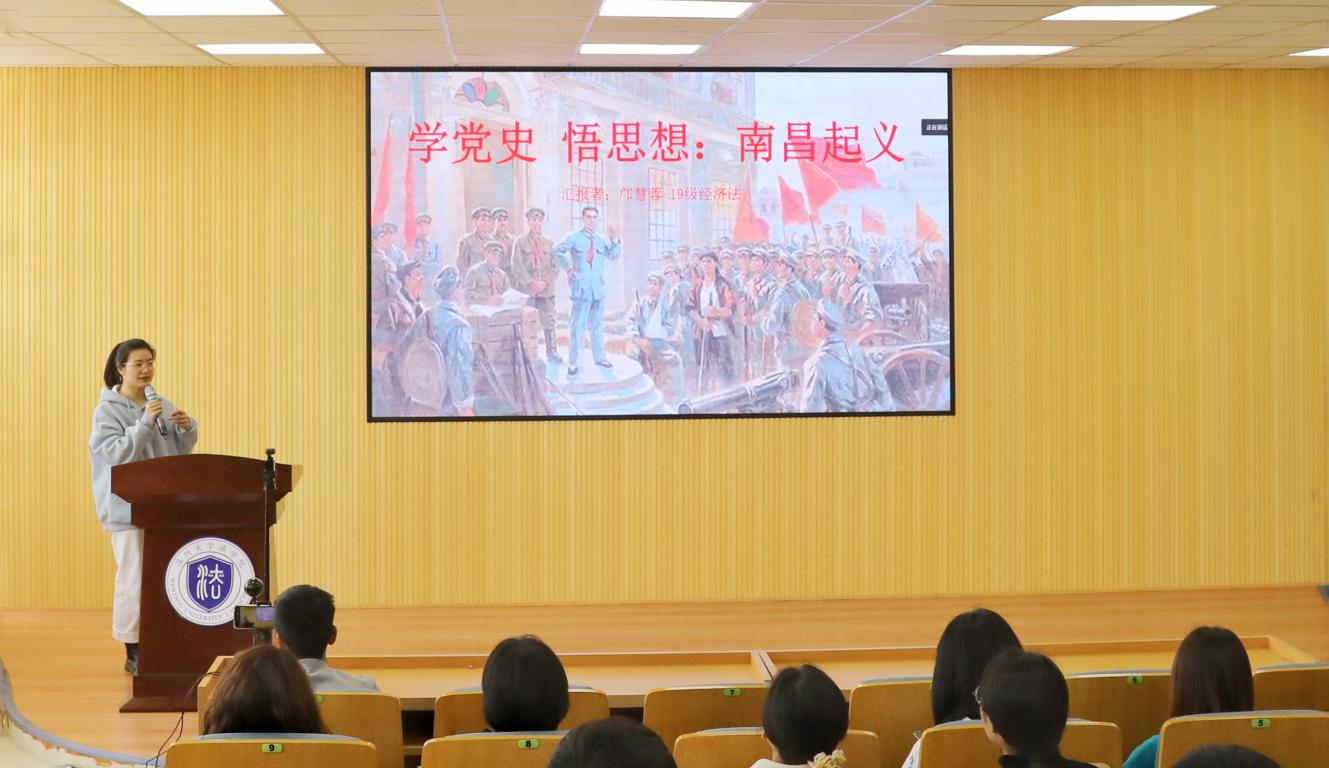 邝慧蓉同学向大家讲述了发生在她的家乡江西的重要历史事件——南昌起义。1927年8月1日,中共联合革命力量,打响了武装反抗国民党反动派的第一枪,揭开了中国共产党独立领导武装斗争和创建革命军队的序幕。邝慧蓉对起义背景、过程、意义等历史知识进行梳理,讲述了南昌起义作为中国革命的一大重要转折点的重要历史地位。南昌起义让中国人民在黑暗中看到了革命的希望,在逆境中看到了奋起的力量。南昌起义作为我们党革命历程中的重要转折点,在敌强我弱的客观情况下,虽然没有取得成功,但充分展现了中国共产党和中国人民不畏强敌、前仆后继的革命精神。我们每位党员都应当铭记这段光辉历史,传承革命精神。