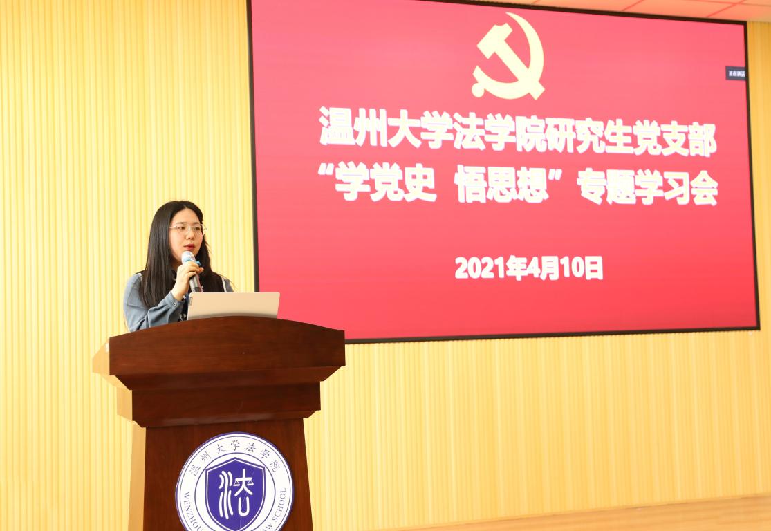 历史是最好的教科书,学习党史能激励我们这些新时代的青年党员不断前进。在中国共产党建党一百周年之际,各地纷纷开展“学党史”活动,回顾历史,传承革命精神。2021年4月10日,av天堂 研究生党支部如期开展了“学党史 悟思想”专题学活动,支部的全体党员、预备党员,以及入党积极分子参加了学习会,4名同学分享了他们学习党史的感悟。