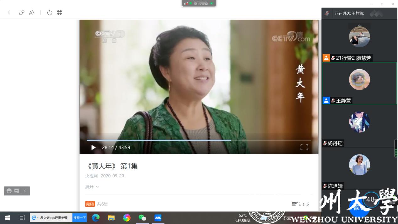 根据《关于深入学习贯彻习近平总书记给全国高校黄大年式教师团队代表重要回信精神的通知》要求,为深入学习贯彻习近平总书记对黄大年同志先进事迹重要指示精神,2021年10月22日,av天堂 本科生第一党支部开展了观看《黄大年》“线上专题学习会”活动,党支部书记黄依瑶老师、支部全体党员参加了此次学习活动,并分享交流各自的学习体会。