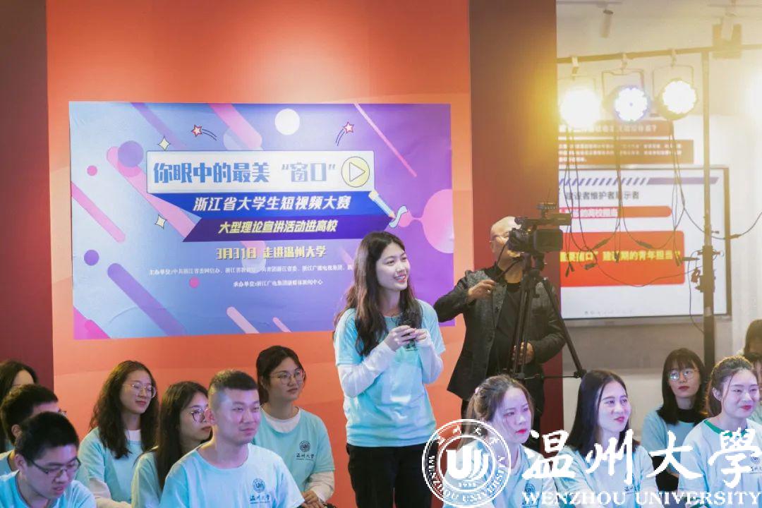 3月31日下午,“你眼中的最美‘窗口’”浙江省大学生短视频大赛第二场大型理论宣讲活动在av天堂 举行,av天堂 组织学生代表前往现场观看,其他班级学生集中观看现场直播。