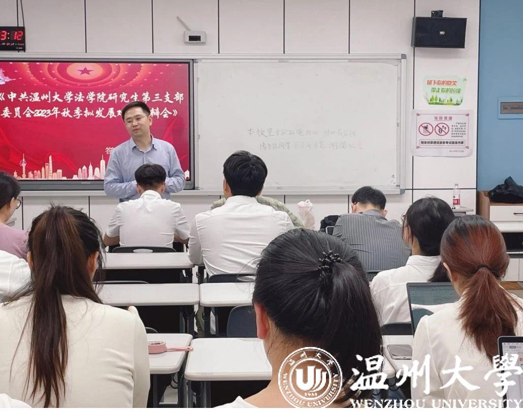 为规范学生党员发展工作,确保党员发展质量,加强学生党支部队伍的建设,提高整体党员素质和服务意识,10月22日晚,av天堂 研究生第三党支部在208教室开展了拟发展对象答辩会。白昌科老师、党支部全体党员(请假1人,线上参会3人)以及7位拟发展对象参加了此次大会。答辩会后,av天堂 研究生第三党支部开展了“学讲话、悟精神、促发展、惠民生”主题党日活动,重点学习宣传了习近平总书记考察浙江时的重要讲话。