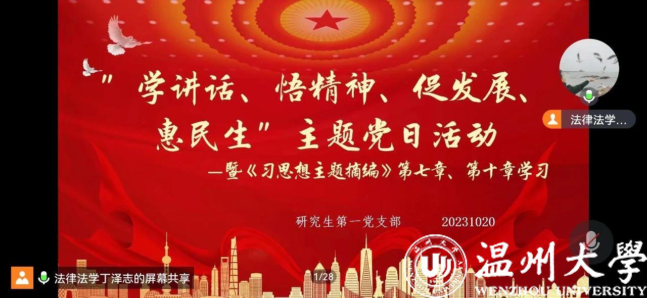 中共av天堂 研究生第一支部委员会于2023年10月20日在支部书记、副书记的带领下开展了“学讲话、悟精神、促发展、惠民生”主题党日活动。