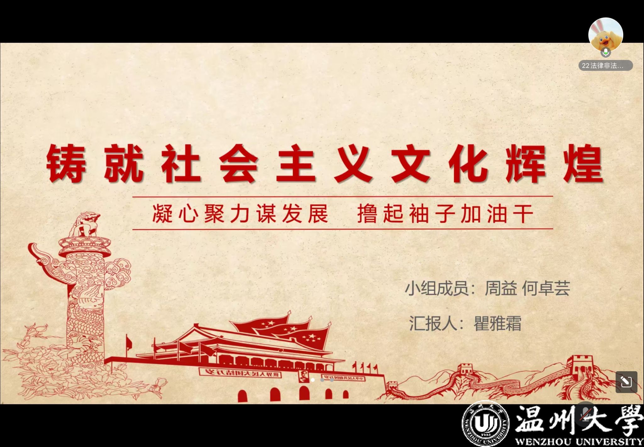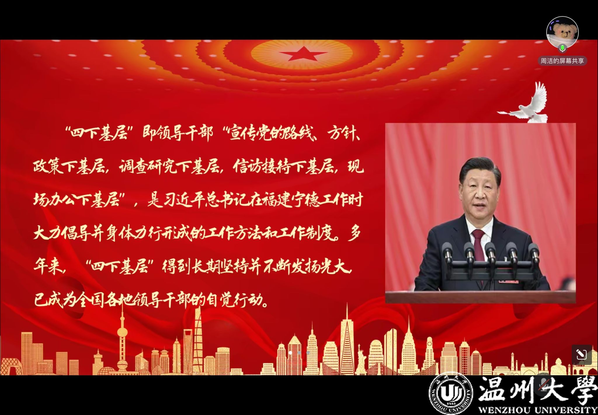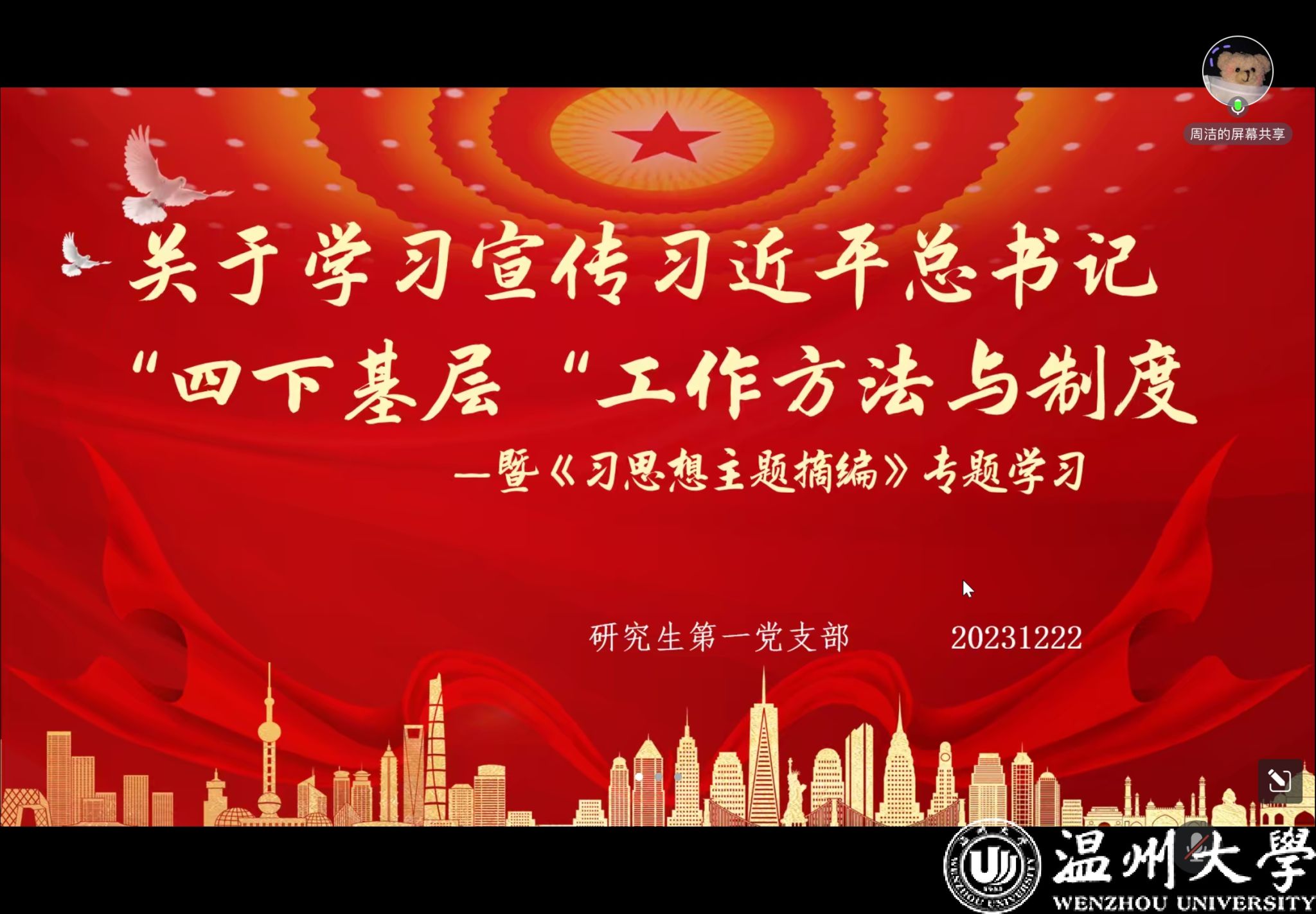 av天堂 研究生第一党支部于2023年12月22日召开了习近平法治思想专题学习会,本次学习首先由党支部副书记周洁同志带领大家学习关于宣传习近平总书记“四下基层”工作方法与制度;其次,由支部党员带领大家学习了“铸就社会主义文化新辉煌”以及“坚持在发展中保障和改善民生”。