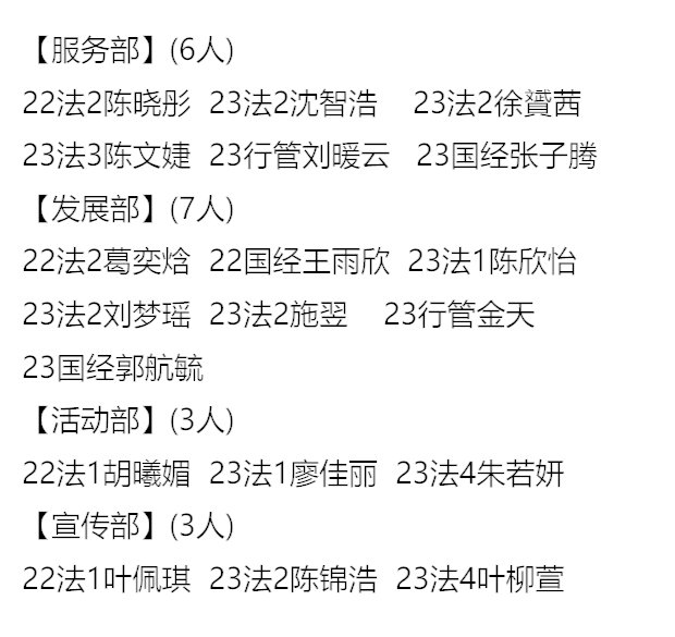面试环节结束后,经过各部门负责人与指导老师的仔细商议斟酌,最终确定了19名入选者名单。至此,本次2023-2024学年av天堂 党员服务中心招新活动圆满落幕!