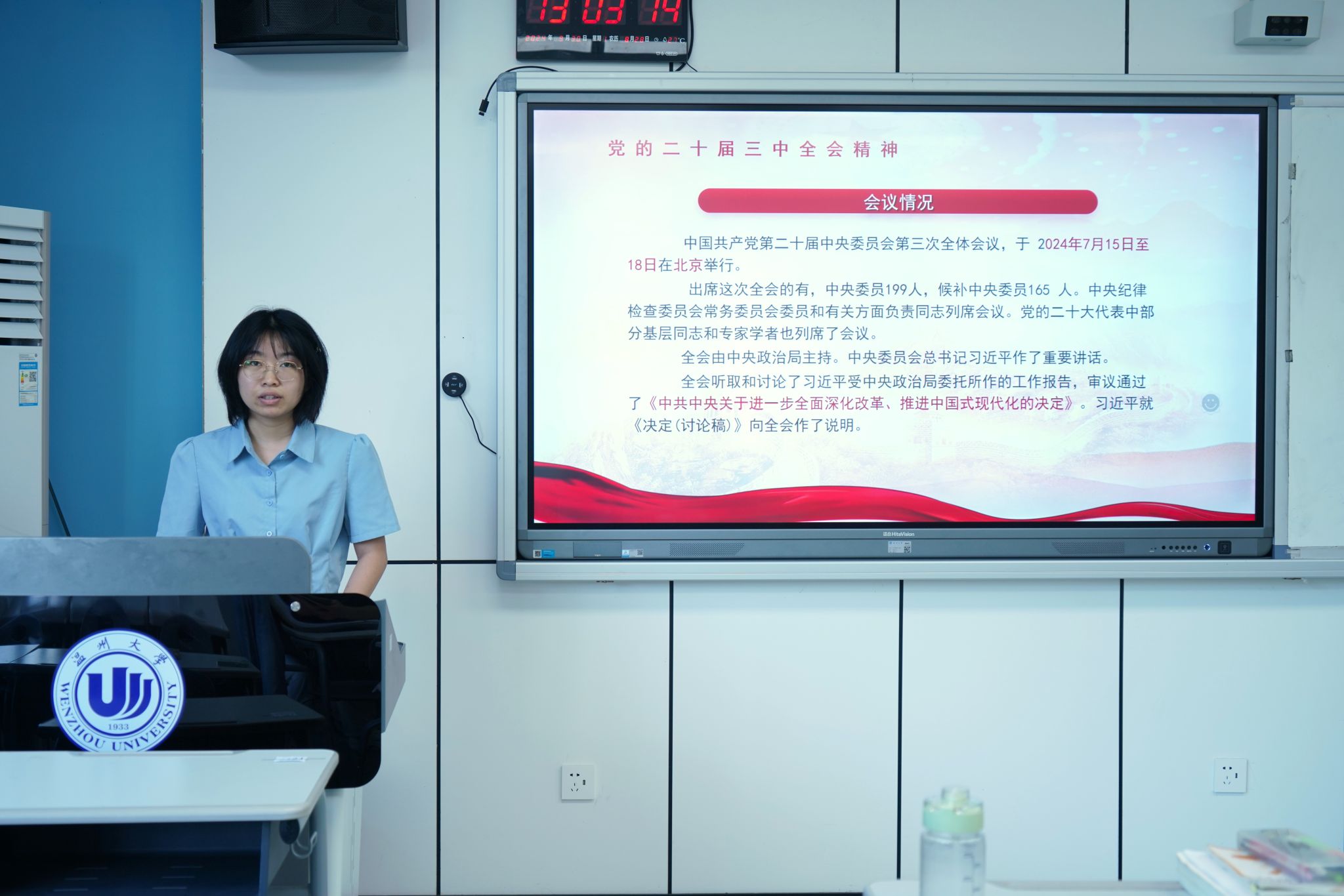 2024年7月15日至18日,中国共产党第二十届中央委员会第三次全体会议在北京举行。为了进一步学习贯彻党的二十届三中全会精神,深入解读习近平总书记在全会上的重要讲话,av天堂 本科生各党支部开展了党的二十届三中全会精神专题学习会。