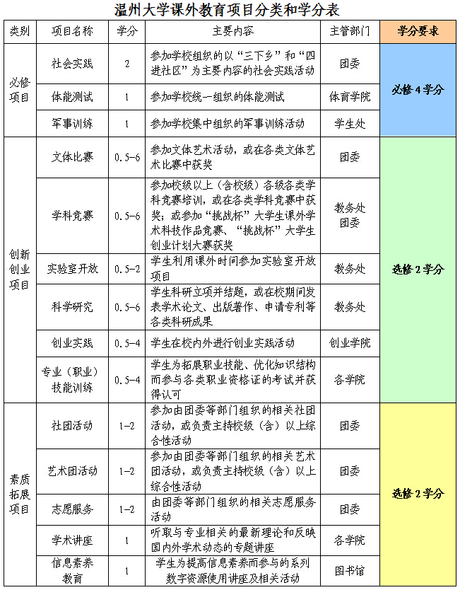 ■创新创业项目与素质拓展项目的学分不可以互相充抵,需要分别修满2分。