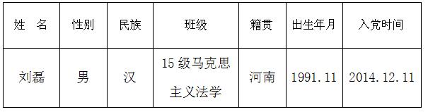 经过一年的预备考察期,经支委会讨论,准备近期召开支部大会讨论刘磊同志转正事宜,现予以公示:公示期限为12月 4日—— 12月10日,如对该同学有异议,请向法政av天堂 辅导员办公室孙德升老师反映,或以电子或书面材料形式反馈意见。