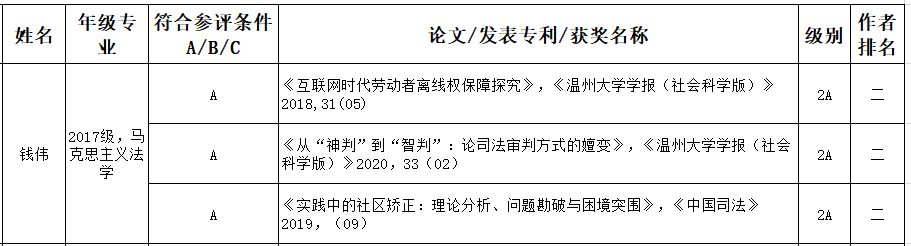 为进一步激励我校研究生勤奋学习、潜心科研,努力提升我校研究生人才培养质量。根据《av天堂 优秀研究生评审办法》文件精神,学校开展研究生“学术新锐奖”的推荐评选工作。通知发出后,我院17级研究生钱伟同学在规定时间内提交了评选材料,经av天堂 组织评审,钱伟同学符合评选条件。现推荐到学校参加评选。相关信息公示如下: