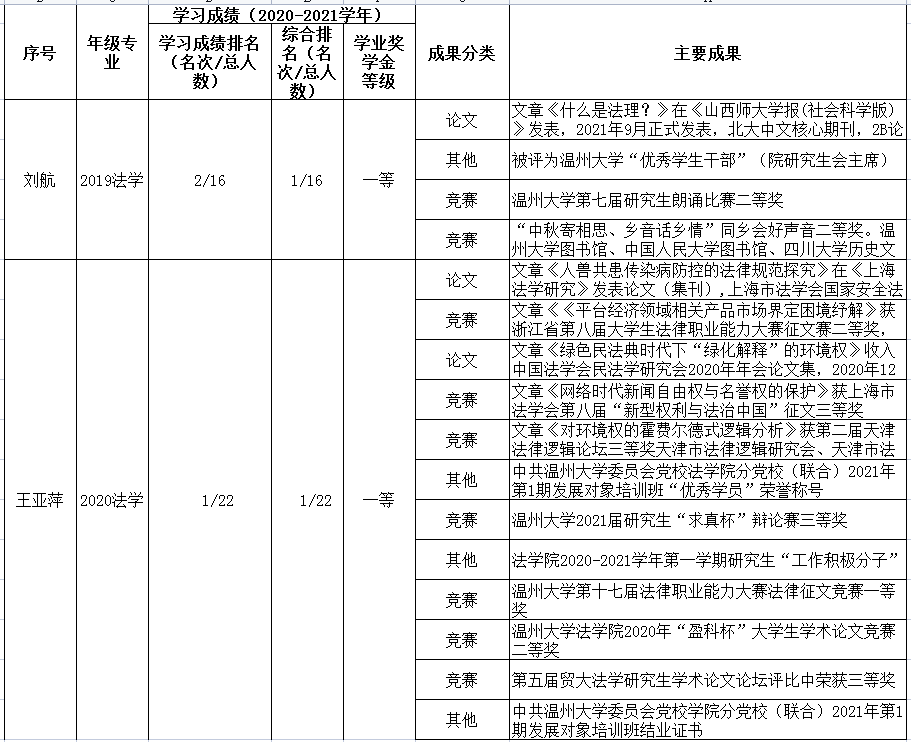 本次推荐参加学校评审的2名研究生基本情况如下: