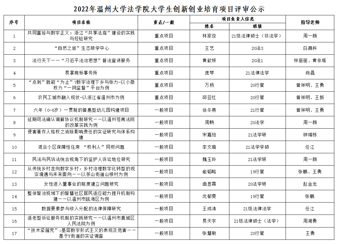 根据《av天堂 关于开展2022年度大学生创新创业培育项目立项申报的通知》要求,经学生本人申请,av天堂 专家评审评定,共评选出重点项目6项,一般项目11项,现将立项结果予以公示。