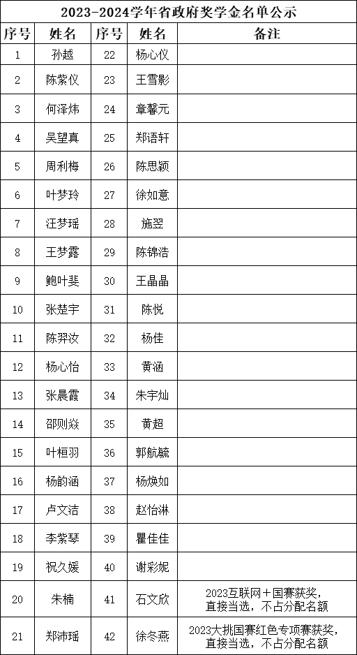 按照学校《关于开展2024年国家奖助学金、省政府奖学金、学费减免等评审工作的通知》的要求,由学生自愿申请并提交相关材料,经过学生个人申请、材料审核、av天堂 学生工作委员会联评,现就av天堂 2023-2024学年省政府奖学金拟推荐名单予以公示。