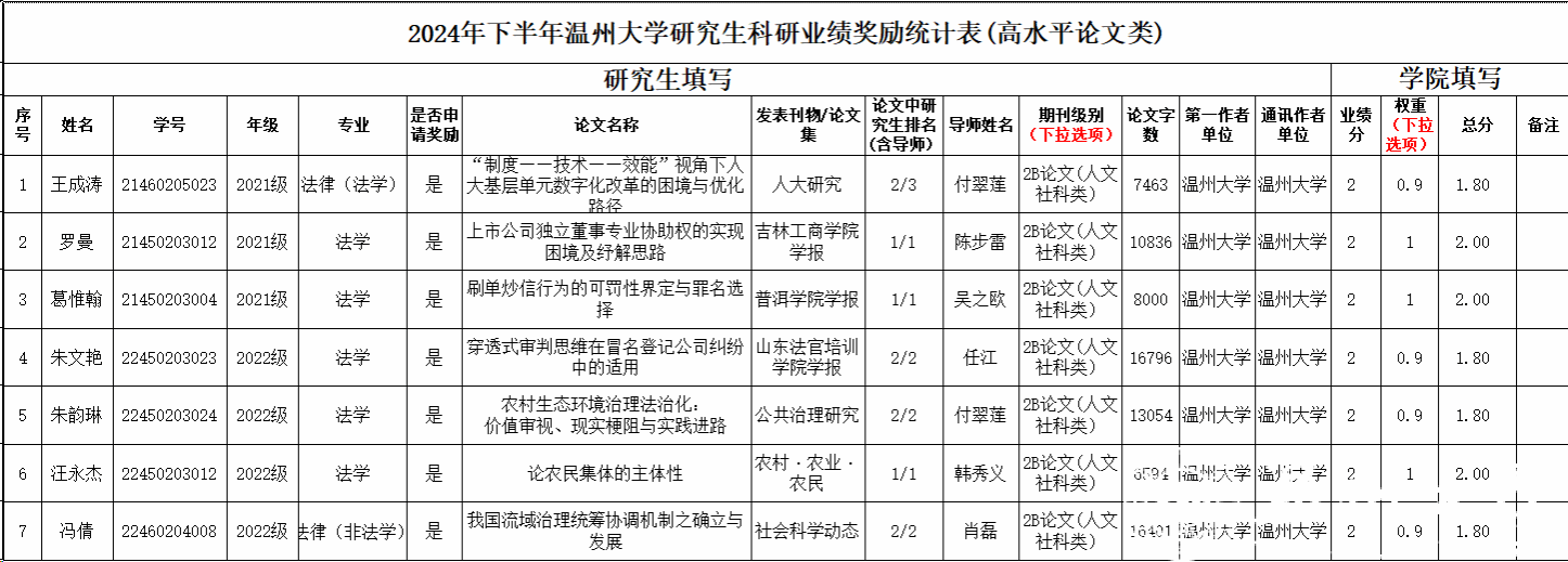 根据《av天堂 研究生科研奖励办法(2017年修订)》及学校关于2024年下半年研究生科研奖励申请的通知,经学生申请、av天堂 审核,现将申请结果公示如下。公示结束后,提交至学校研工部审核,学校根据相关“奖励办法”(见附件)给予奖励。