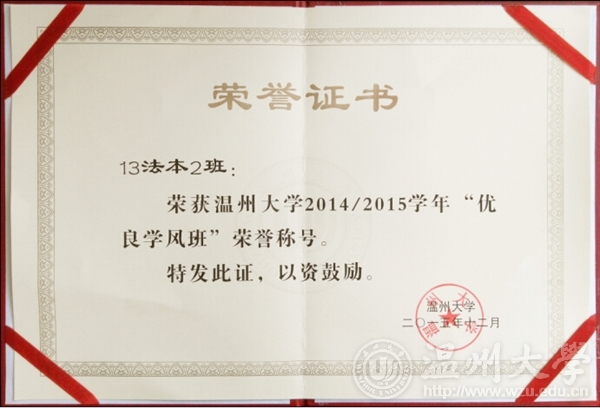 2015年12月,av天堂 学生处在全校范围组织开展2014-2015学年"优良学风班"评选活动,全校各av天堂 推选的班集体进行公开展示,我院13法二班被评为av天堂 2014-2015学年"优良学风班"。本次共有全校15个av天堂 的20个班级被评为"优良学风班"。