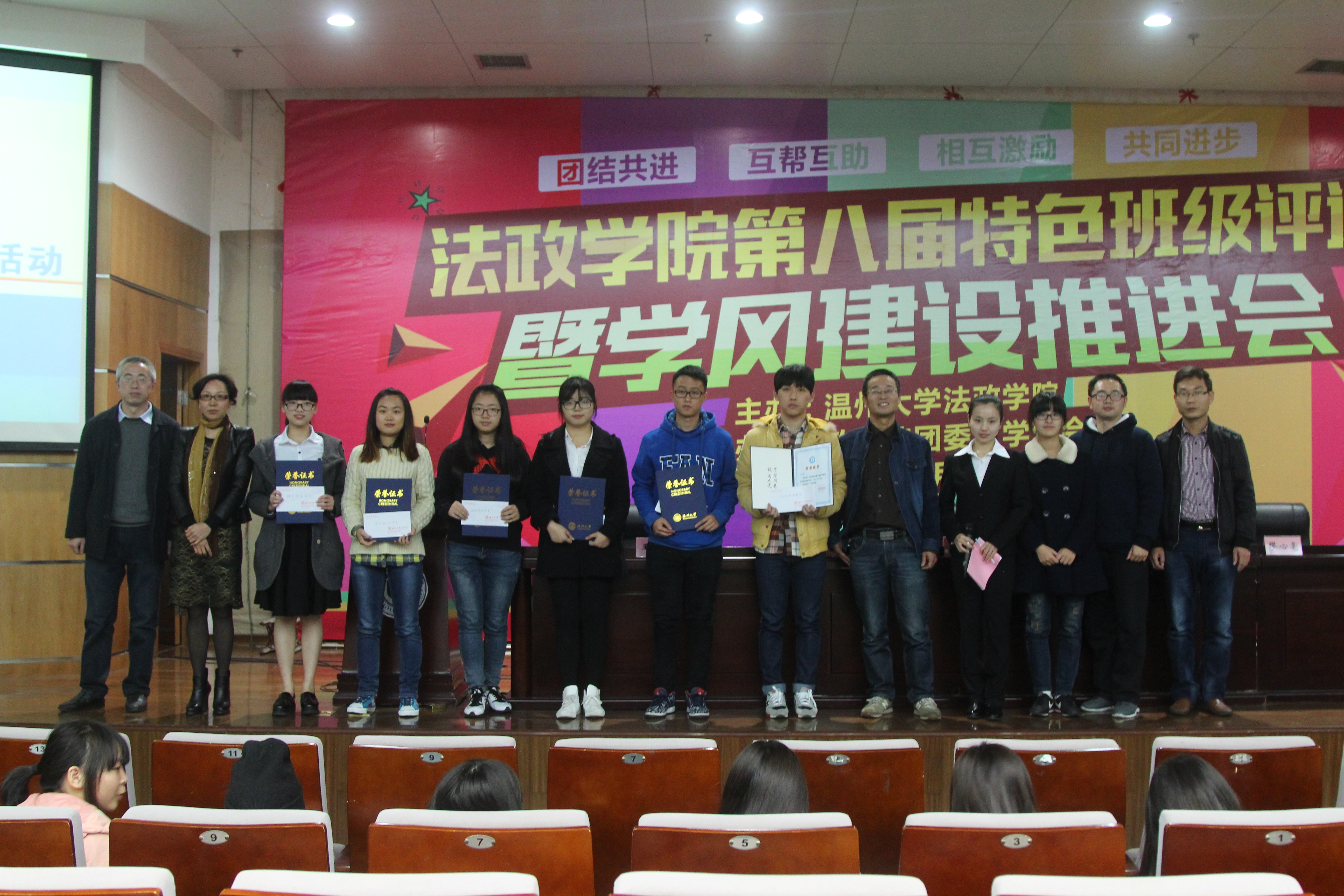 至此,自2011年《法政av天堂 特色班级建设与评选办法》发文并实施以来,在各位班主任老师的日常指导和班级同学的积极申报参与下,2011至2015年已连续开展了八届法政av天堂 特色班级评选暨学风建设推进会,先后评选出16个"学风特色班"、6个"科技创新班"、7个"党团示范班"、15个"素质拓展班",共44个特色班级荣誉。