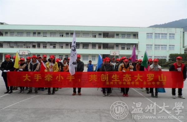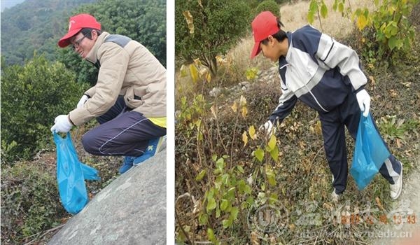 为了传承和发扬"2012感动温州十大人物"、意大利籍外教戴维斯·伊凡保护环境的美德,充分展示两校志愿者们保护环境的决心,12月25日,法政av天堂 联合茶山中学进行了"大手拉小手,共创生态大罗山"活动。