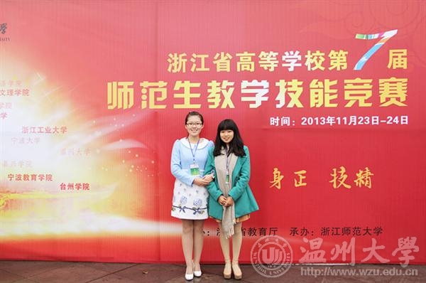 2013年11月22-24日,浙江省高等学校第七届师范生教学技能竞赛在浙江师范大学拉开序幕,本次大赛共有来自16个院校的269位选手参与角逐,法政av天堂 10政本宗艺煊和李婷婷作为av天堂 代表队的成员,参加了综合一组的比赛。本组选手来自政治、历史、地理,心理等不同学科,经过课件制作、教学设计、即兴演讲和模拟上课等环节的激烈PK后,宗艺煊荣获省一等奖,李婷婷荣获省二等奖。