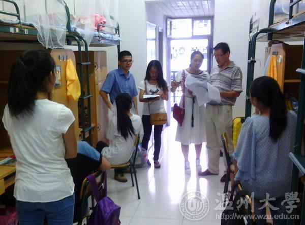 年9月4日,法政av天堂 新生正式报到,下午报到工作基本结束,新生们都住进了温暖舒适新家。我院迎来了充满激情怀揣梦想的200余位2013级本科和研究生新生。为及时了解2013级新生到校后的生活面貌,为加强与新生们的沟通交流,下午17:00法政av天堂 钭晓东院长、王柏民书记、严玲红副书记、王宗正副院长,各系主任、新生班主任、院行政科室负责人及新生班主任助理等分组走访了全院新生寝室,了解新生到校情况。