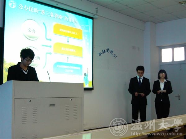 下午,法政av天堂 在北校2号楼202教室举行av天堂 挑战杯重点项目决赛答辩。此次共有我院研究生和本科生的6个参赛项目进行展示和答辩,将选出4个最优秀的项目推荐参加2013年浙江省第十三届"挑战杯"大学生课外学术科技作品竞赛。
