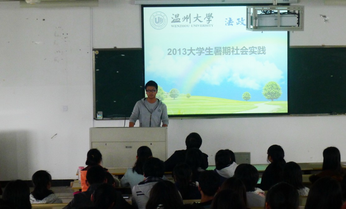 会议由法政av天堂 团委素拓部部长杨舟主持,此次活动目的是让即将参加暑期社会实践活动的同学充分理解什么是暑期实践、如何做暑期实践、暑期实践的意义是什么。同时,这也是av天堂 2013年暑期社会实践普及培训班的一部分。首先,同学们认真观看了展示2012年av天堂 暑期社会实践成果的视频短片,对暑期实践活动有了初步认识。随后,法政av天堂 2012年开展活动的"亲情中华·关爱侨界留守儿童实践队"队长诸超龙、"美丽温州·七彩虹环保维权实践队"队长张晓强分介绍了活动情况并分享经验。两位队长的介绍,让同学们全面了解了暑期实践的过程,并深刻理解了参加暑期实践的重要意义,同学们在倾听两位队长演讲的过程中,表现出浓厚的兴趣,对今年的暑期实践充满了期待。最后,白昌科老师做了讲话,他为同学们分析暑期实践对于大学生接触社会、适应社会的作用。大学期间参加社会实践是增长阅历、积累经验的重要途径,对于将来的就业和工作都会起到重要作用。白老师建议同学们把暑期实践与科研课题、挑战杯竞赛、专业实习相结合,充分发挥暑期实践活动的作用。白老师在会上正式通知大家准备参加2013年暑期实践方案设计大赛,鼓励同学们积极策划、积极行动,在社会实践中"长才干、受锻炼、做贡献"。