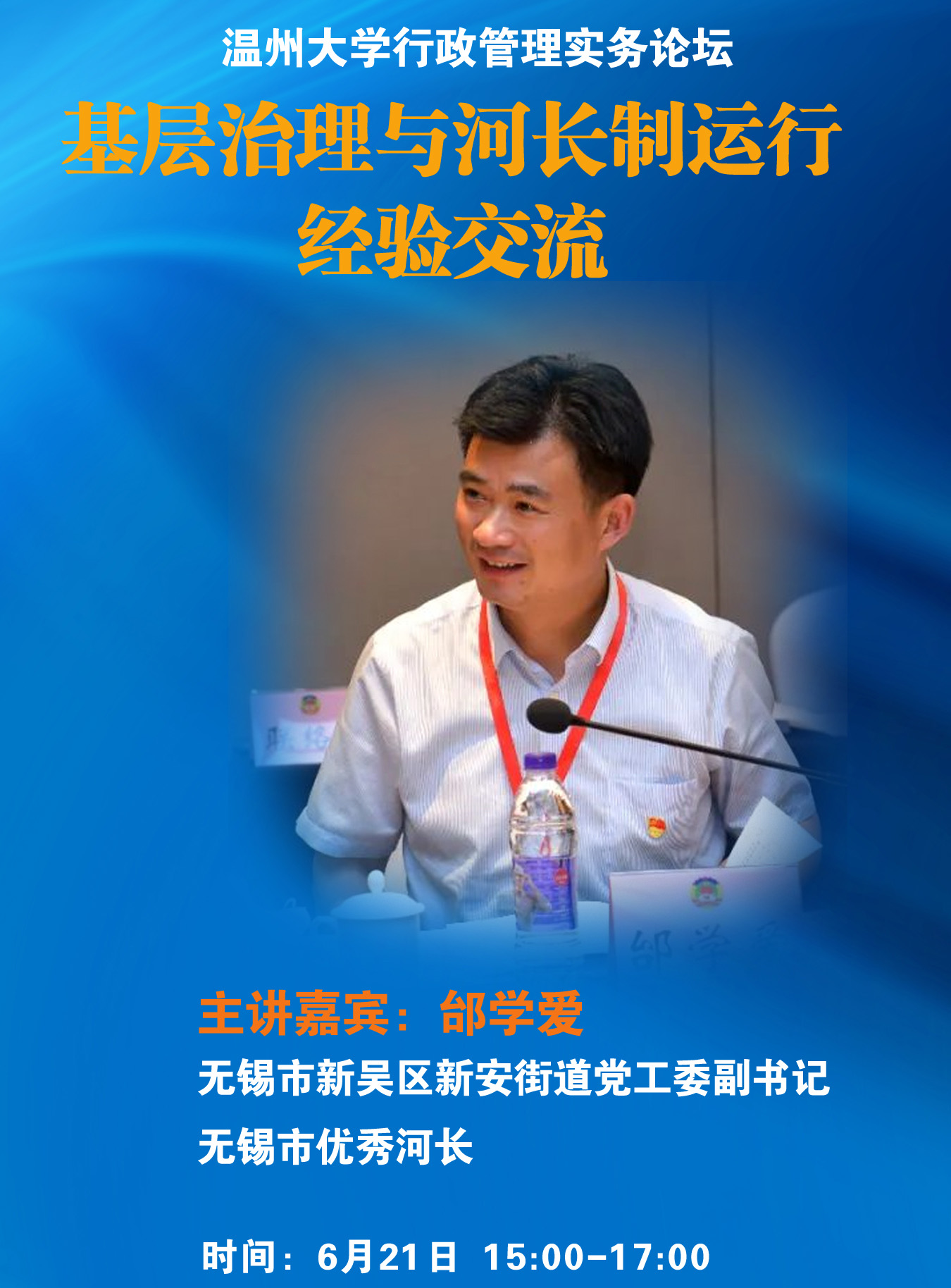 2020年6月21日下午,av天堂 行政管理专业师生、19法学部分学生通过腾讯会议线上参与了行政管理实务论坛。江苏省无锡市新吴区新安街道党工委副书记邰学爱受邀担任这次论坛主讲人。作为无锡市优秀河长,邰书记主要就任职期间有关基层治理特别是河长制运行的经验作出交流。