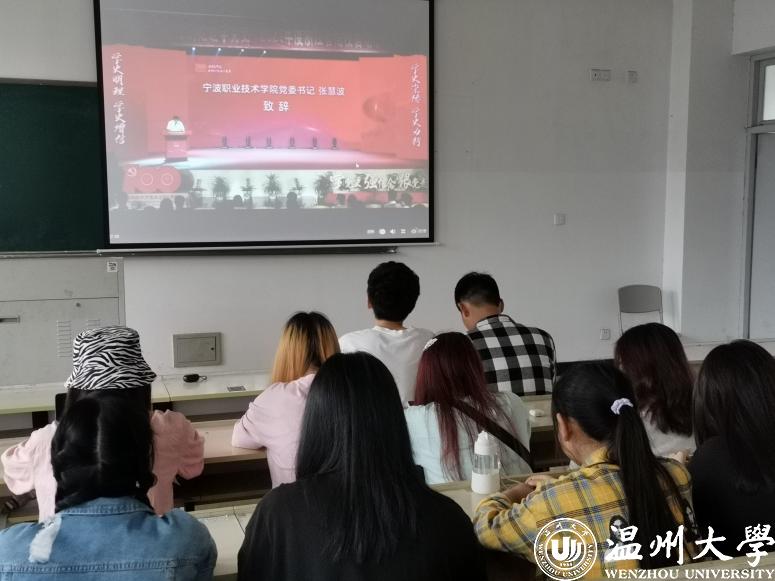 6月4日下午,由共青团浙江省委、浙江省教育厅、浙江省学生联合会联合主办的《跟着总书记在浙江的足迹学党史——2021年度浙江省高校首场思政公开课巡讲》在宁波职业技术av天堂 现场开讲,av天堂 组织各团支部观看直播,带着饱满的热情进行了观摩与学习。