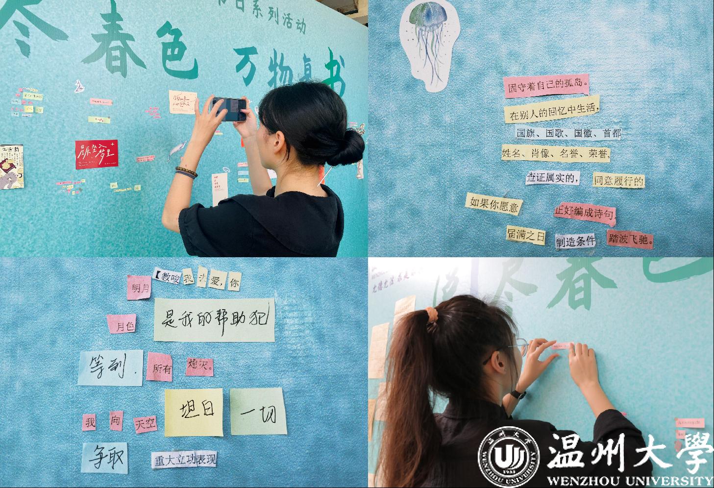极具法律特色的“律寄千言”法条拼接诗活动也如火如荼地开展着。剪下书本中的零碎诗意,拼上法言法语,凑成一首崭新的诗歌,组成了法科生独特的浪漫。同学们用他们的天马行空、奇思妙想,作出了一首首别出心裁的拼接诗。