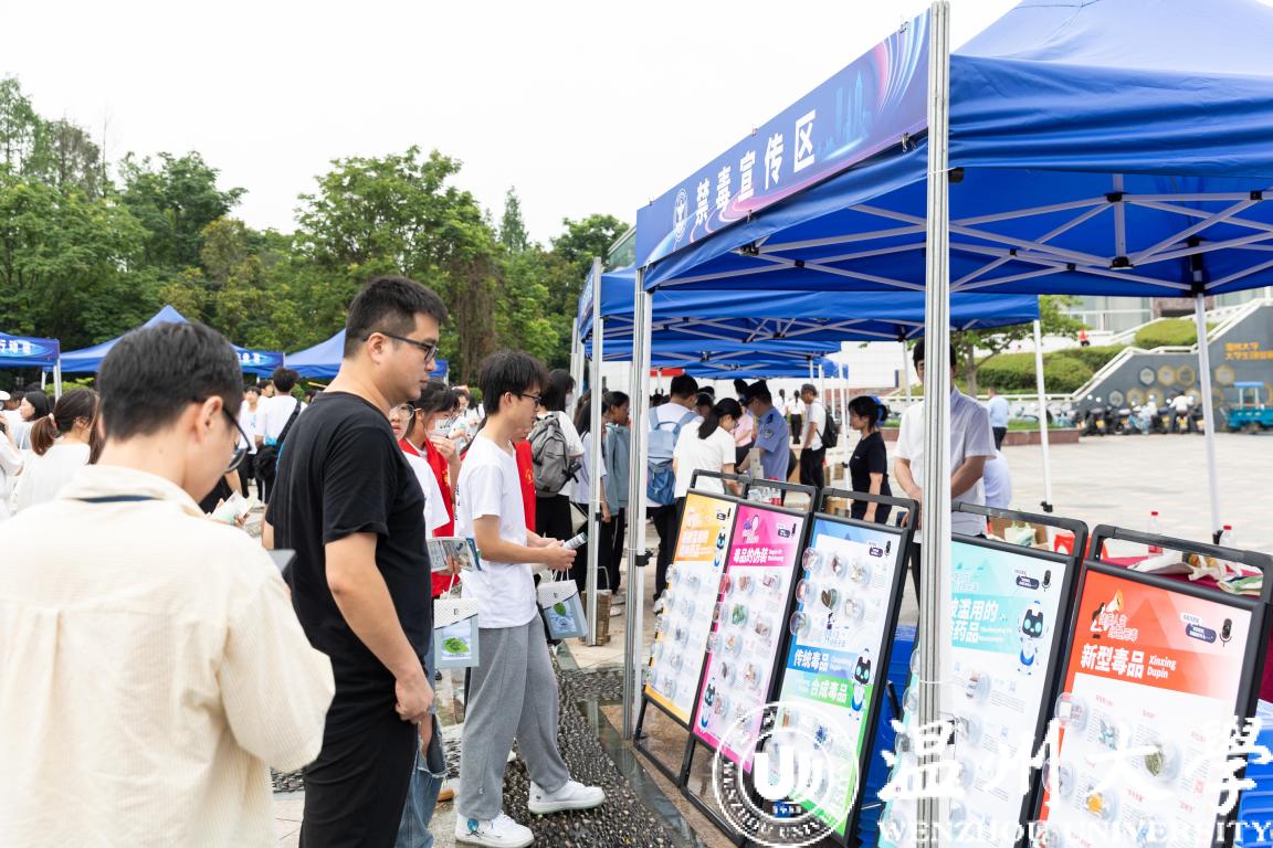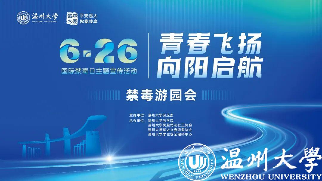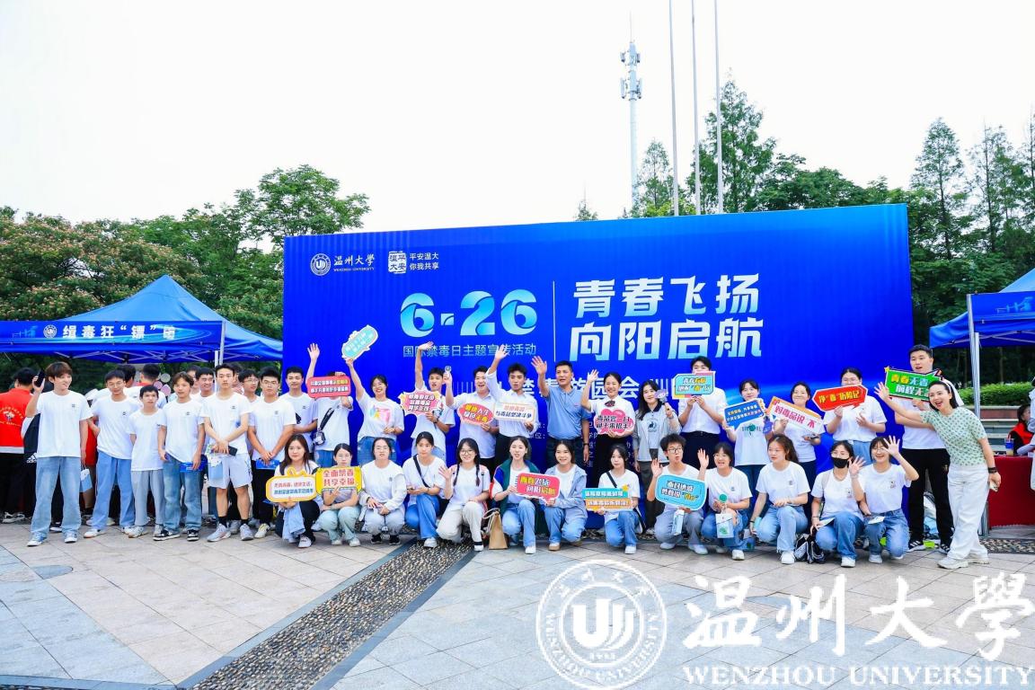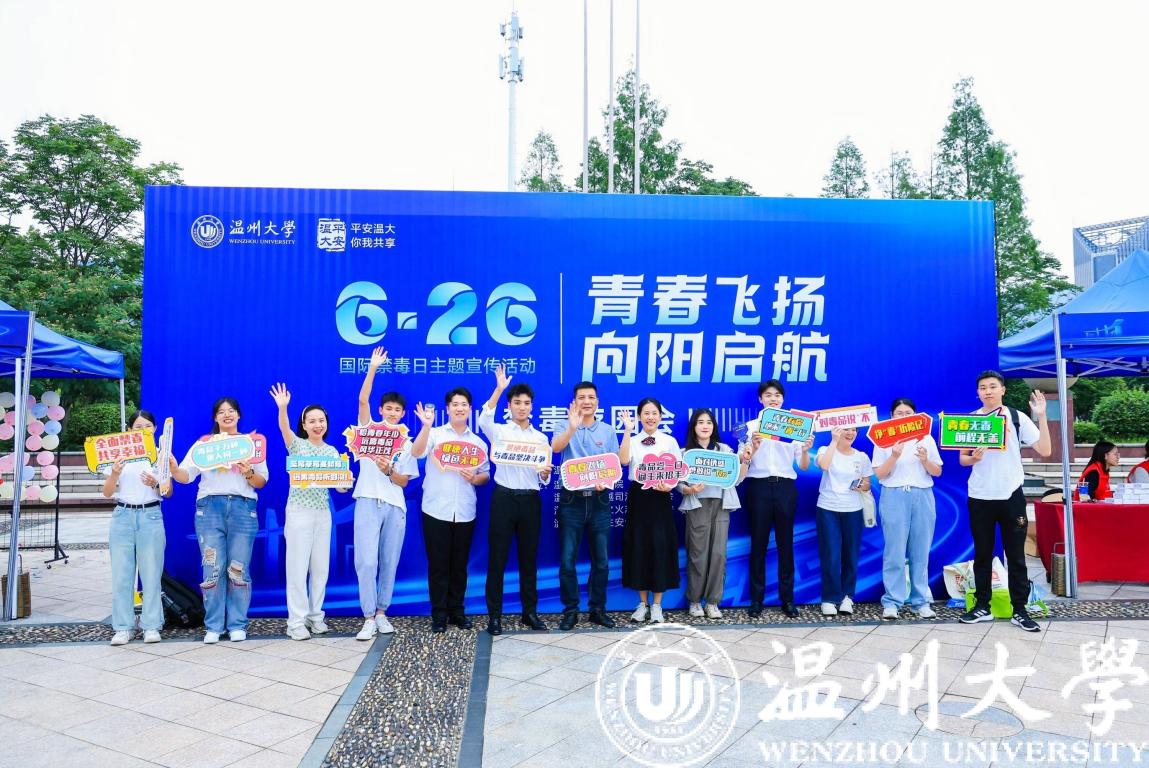 为全面营造全民禁毒宣传月活动氛围,助推温州市“全国禁毒示范城市”创建工作,进一步增强在校学生识毒、防毒、拒毒、禁毒意识,在第36个“6·26”国际禁毒日来临之际,av天堂 保卫处联合av天堂 开展“青春飞扬,向阳启航”——禁毒主题游园会,活动吸引了温州各大高校学生广泛参与。