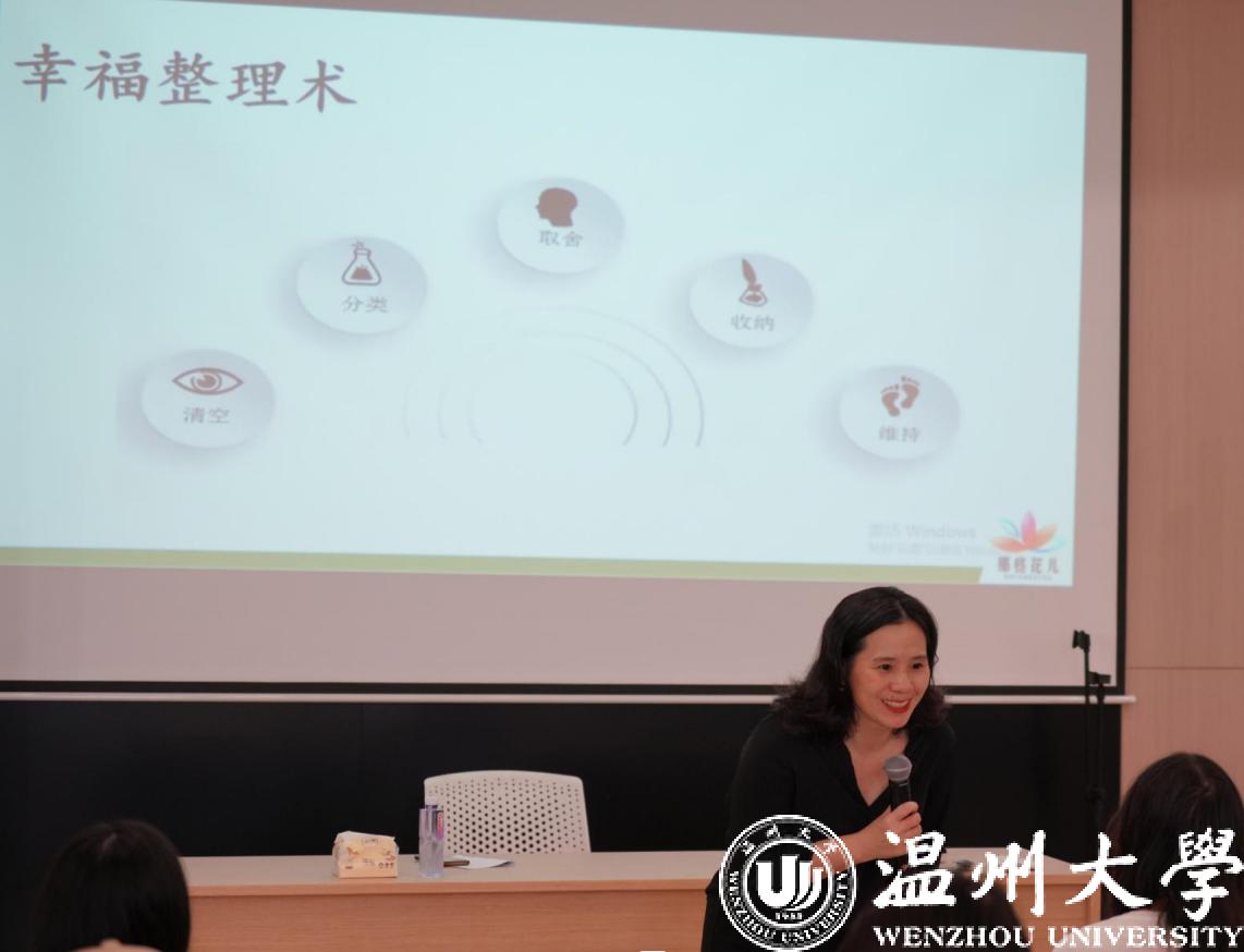 零零散散乱人眼,繁繁总总堵人心。在有限的空间里,如何“收纳整理”一直是困扰了同学们很久的难题。11月3日14:00,我院特邀校妇联办公室主任朱秀微老师在幸福工坊活动室开展“幸福整理课”的专题讲座,帮助同学应对不良生活习惯无形中带给自己的压力以及情绪问题。