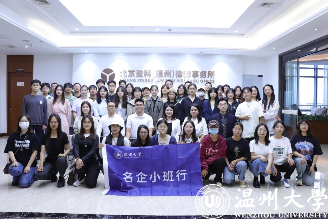为进一步明晰学生未来就业方向,提高岗位认识,拓宽专业视野,2023年10月25日下午,av天堂 就业工作辅导员蒋玮隽带领五十余位本研学生赴北京盈科(温州)律师事务所参观学习。