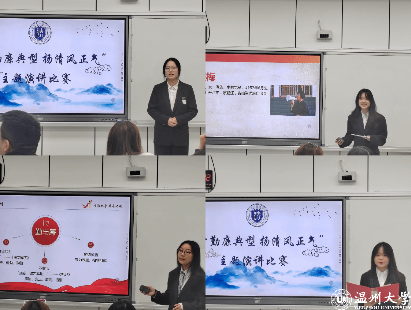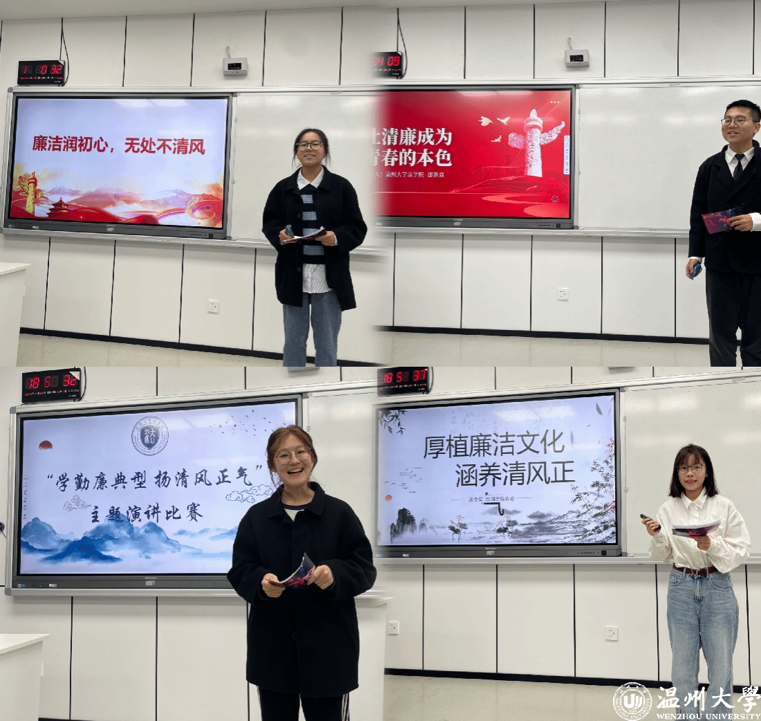 通过此次“学勤廉典型,扬清风正气”主题演讲比赛,展现温大学子的青春风采的同时,也增强了大家的廉洁意识,懂得了廉洁的内涵及重要性。在今后的学习和生活中,让我们携手,用廉洁润初心,坚定中国特色社会主义理想信念,铸造廉洁之魂不负使命担当,增强廉洁治校、廉洁从教、廉洁育人、廉洁修身意识,营造好风清气正、勤廉并重的校园文化氛围。