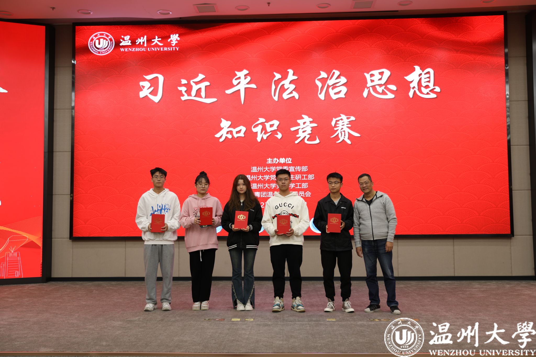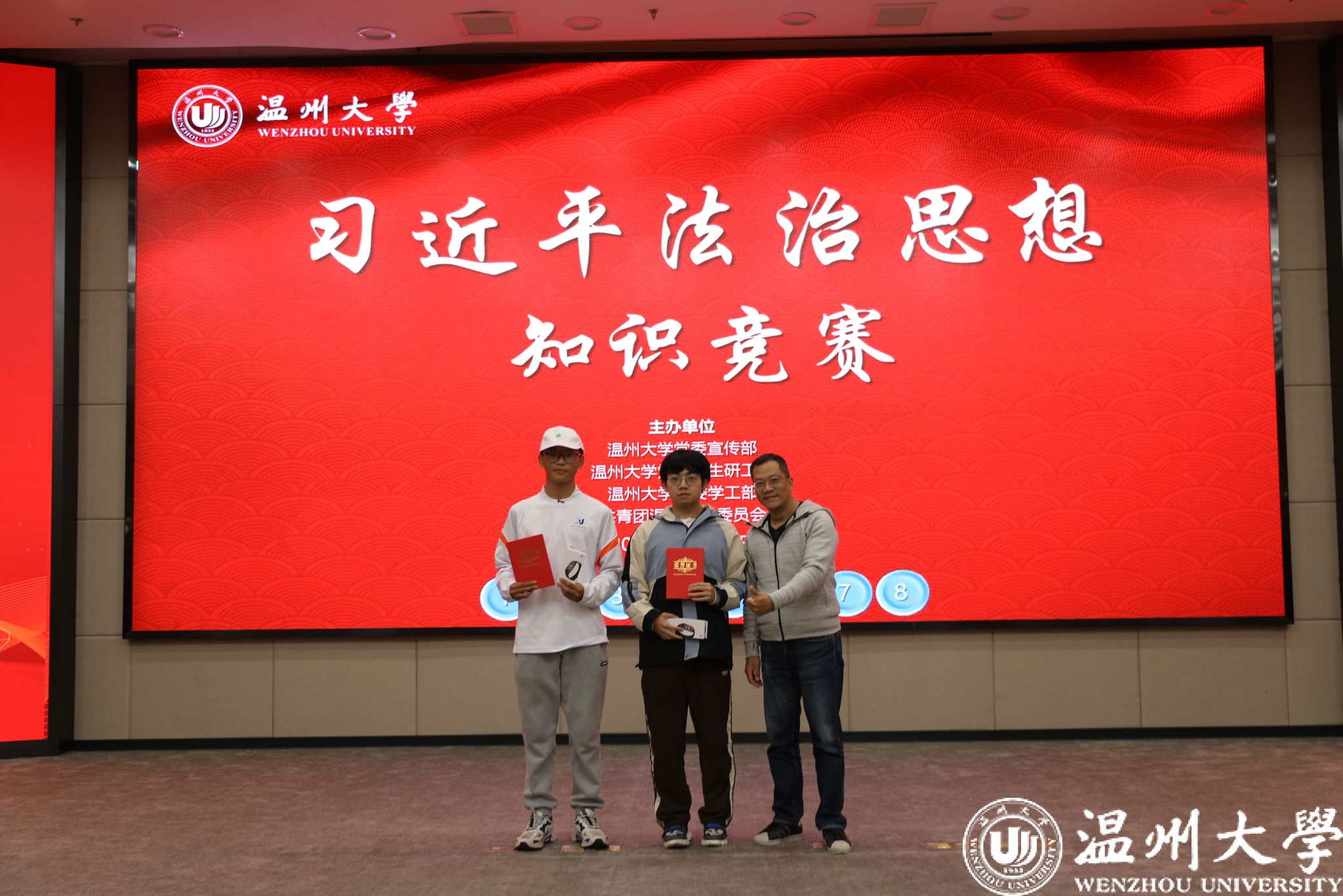 经过三个小组对常规题组和备选题组的激烈抢答,最终评选出一、二、三等奖及优胜奖,av天堂 党委副书记兼纪委书记杨振海老师为获奖选手颁发了校级荣誉证书及奖品。
