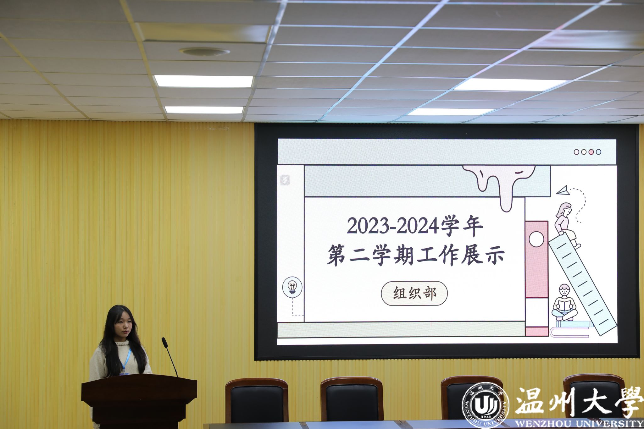 经历了一学期工作锻炼的各部门干事已然能够游刃有余地处理好本部门的工作,他们在部门工作展望的汇报中收放自如,风格各异。幽默风趣的话语、生动的图文展示与干事们的介绍并茂,活跃了全委会的气氛。他们手拿话筒,与师生共邀,带领着大家重温共同工作的温馨美好。置身其中,总能会心一笑。这场不忘本来,面向未来的汇报,吹响了av天堂 团委·学生会全体成员新学期砥砺奋进嘹亮的冲锋号。