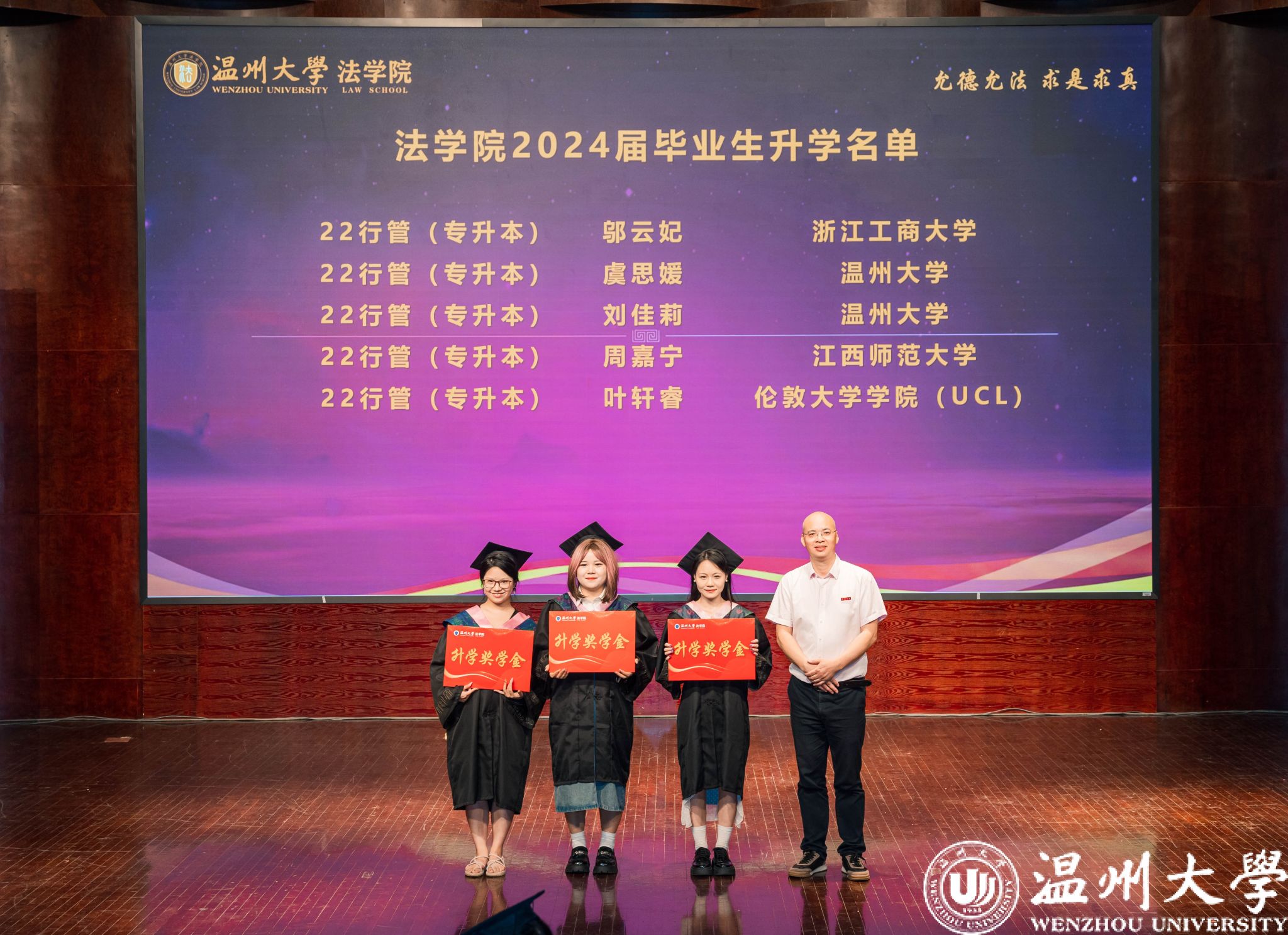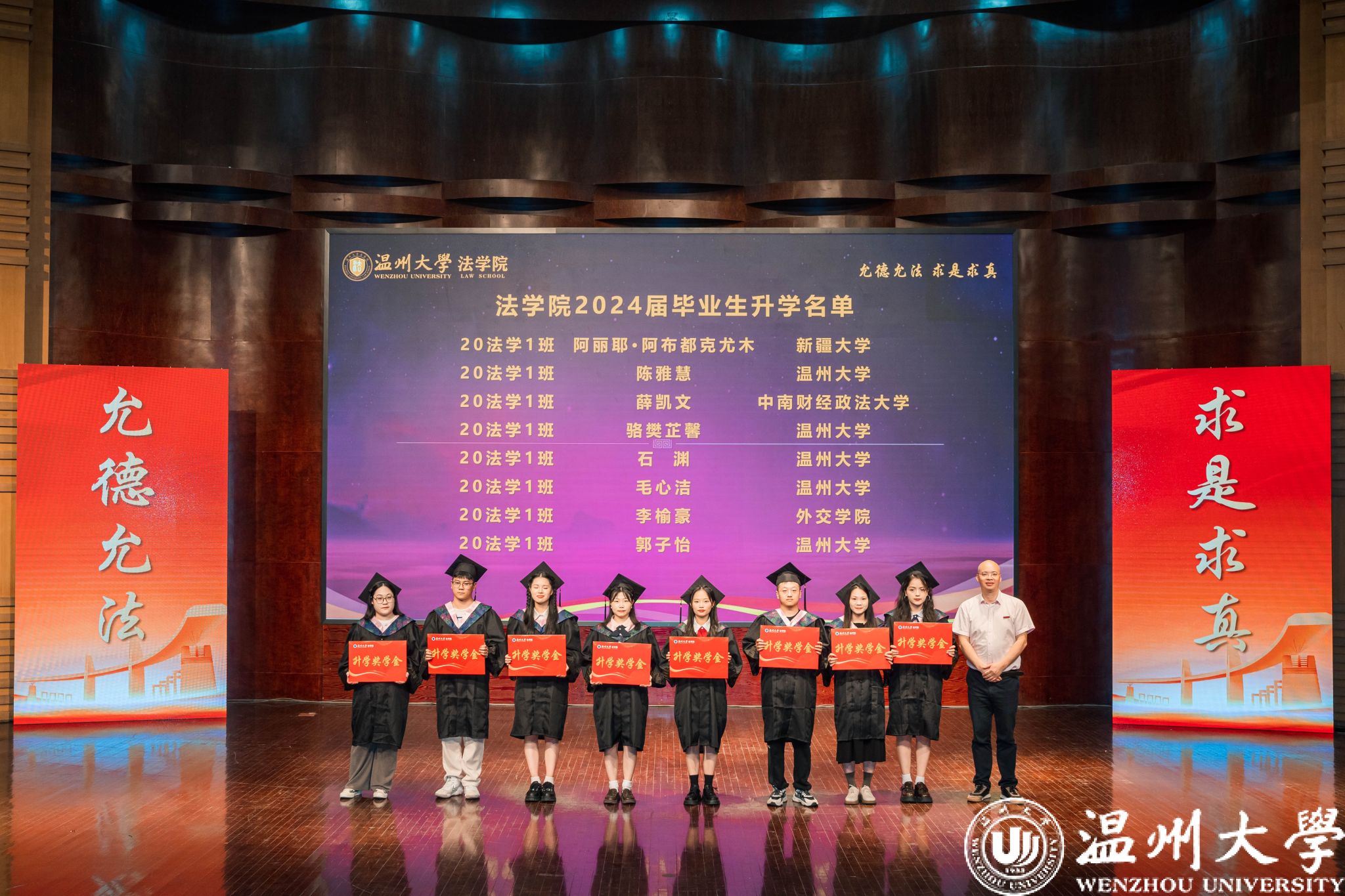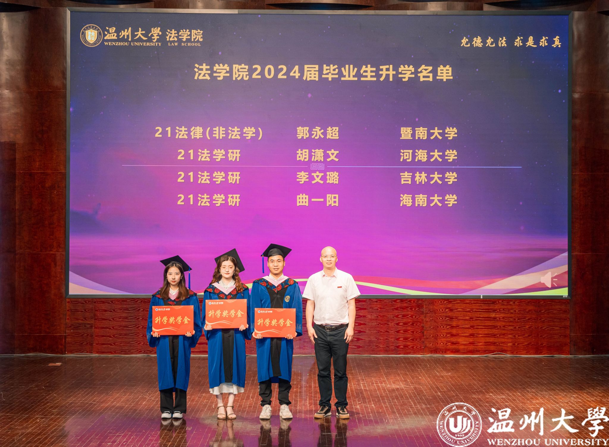 在考博考研的征途中,我院2024届共42名学生成功考取心仪院校。典礼现场,院长王宗正为同学们颁发升学奖学金并送上诚挚的祝福。
