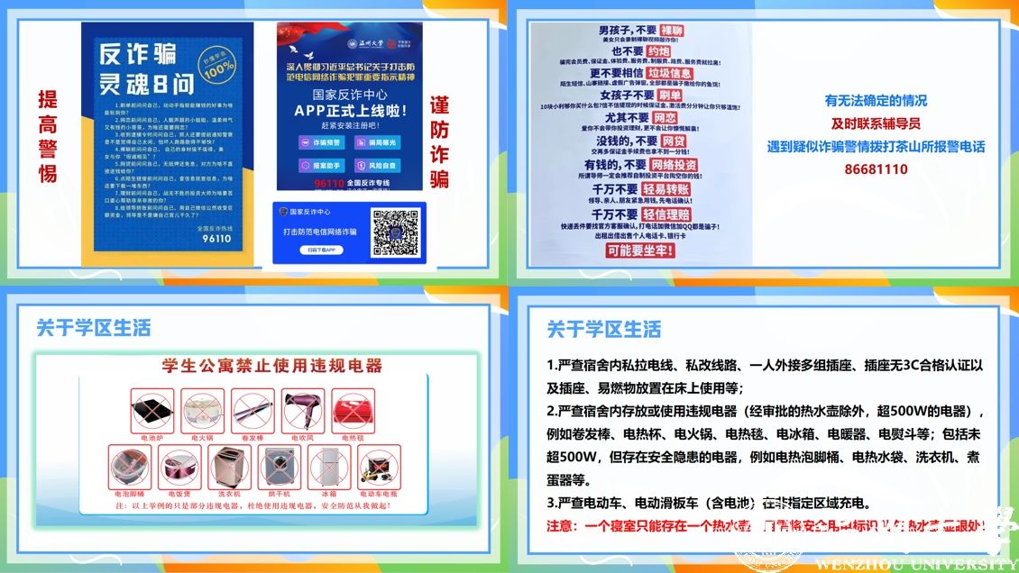 在安全教育环节,黄老师以近两年发生在学校的真实案例警示大家,科普了防诈反诈、交通安全、消防安全、食品安全、公寓安全等方面的相关知识。
