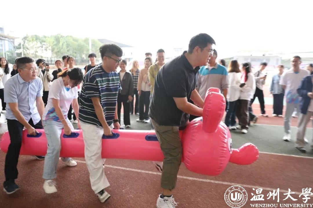 在趣味接力、神笔马良、毛毛虫竞速、拔河等趣味项目中,同学们的欢声笑语是青春与友谊的热烈交织。