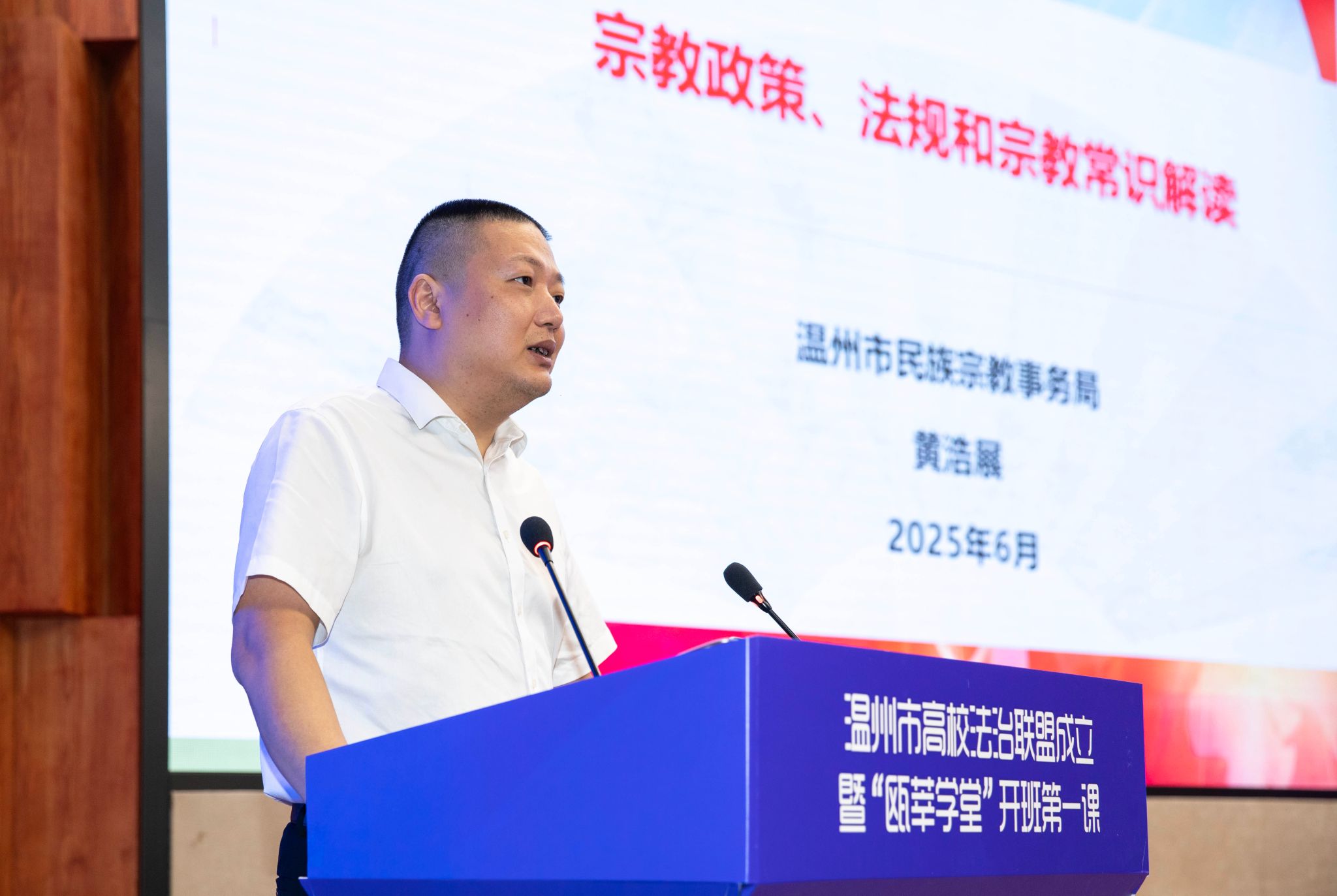 作为“瓯莘学堂”开班首课,来自民宗部门的“瓯莘讲师”敲响上课铃,他通过“以案普法”,帮助高校学生厘清法律与信仰的界限,引导学生树立正确宗教观。