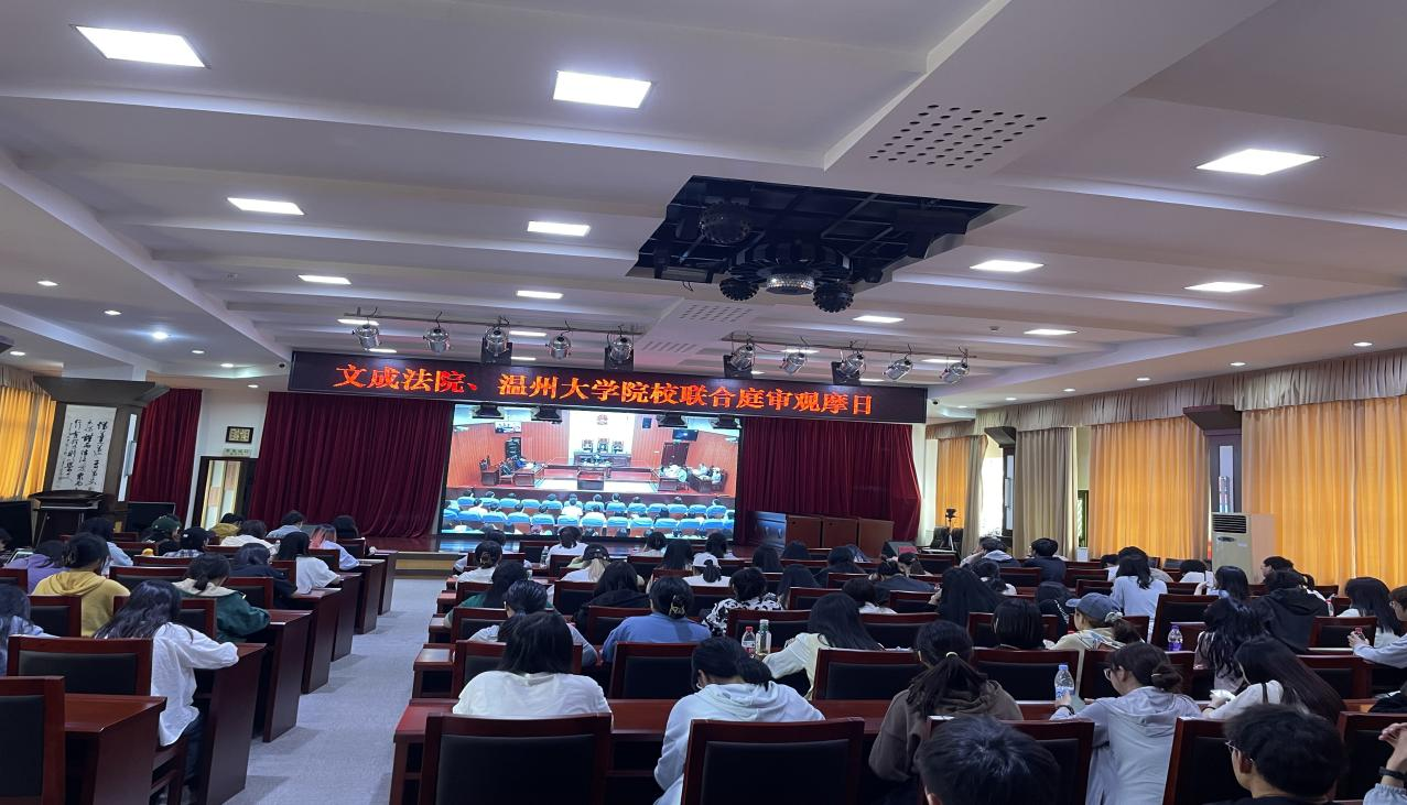 4月18-19日,20法学166名本科生在av天堂 法律系主任谢丽珍老师、任江老师、王艺曌老师、郭秉贵老师带领下赴文成县法院开展《模拟法庭》实践教学活动,通过“零距离”观摩庭审,旁听一起行政诉讼案件,“零距离”感受书本之外“鲜活”的法律。