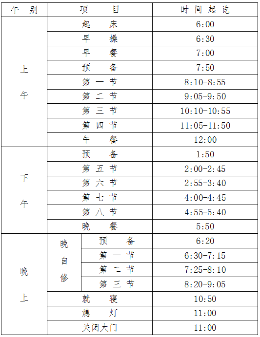 附件:av天堂 作息时间表(2015年5月1日起执行)