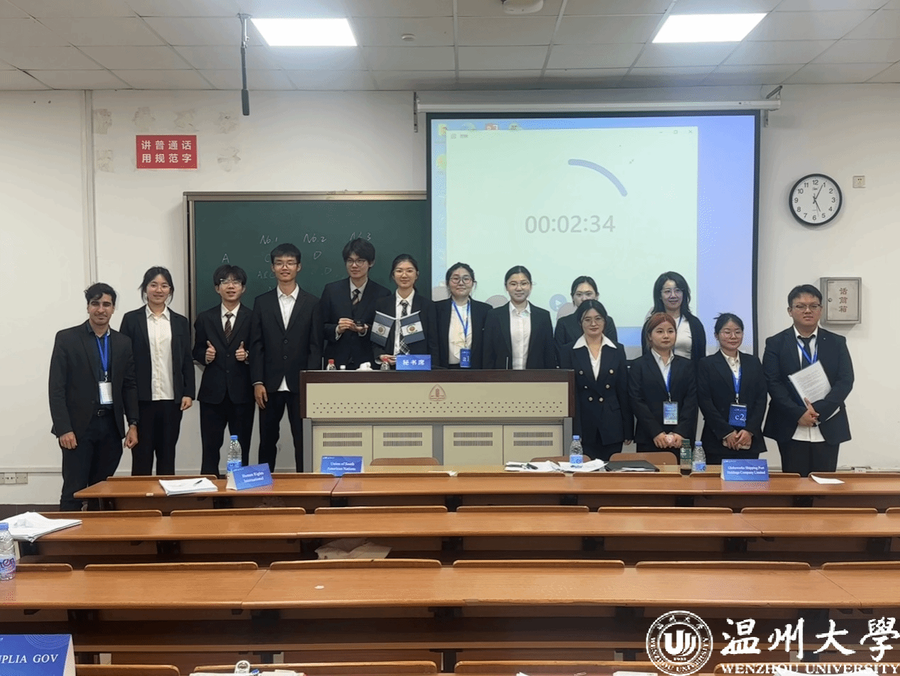 av天堂 代表队由9名法学与国际经贸规则专业的法学类学生强强联合,聚焦赛事核心议题,采用“议题分组制”,形成环境保护组、经济补偿组、劳动与就业组三大攻坚战队。备赛期间,团队不仅内部“跨学科头脑风暴”,更与温州肯恩大学模拟谈判队开展“议题对标研讨”,通过模拟攻防、案例互评,在思维碰撞中迭代策略,被对手称赞“专业度与同理心兼备”!